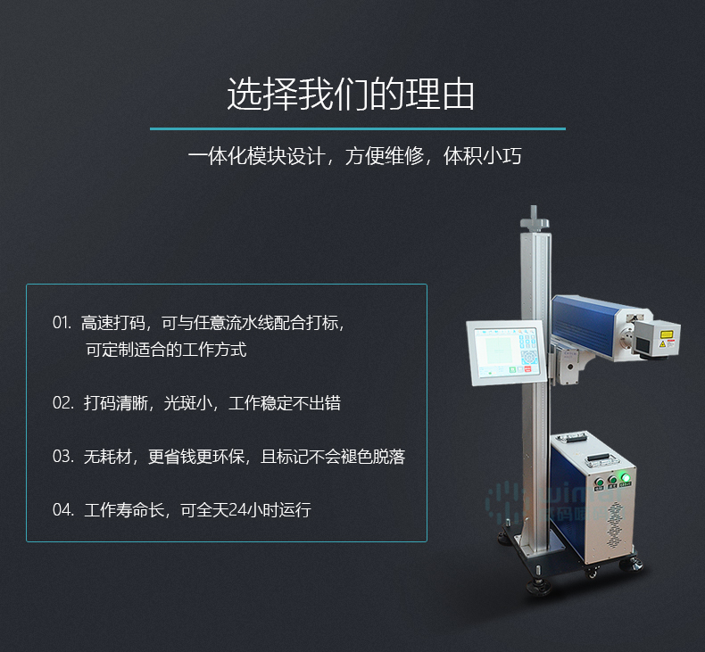激光噴碼機(jī),采用固態(tài)激光器,進(jìn)口配件,專門針對包裝及化妝品等量大且需求快速打標(biāo)的行業(yè)。單片控制系統(tǒng)及遠(yuǎn)程wifi連接,支持脫機(jī)及遠(yuǎn)程控制